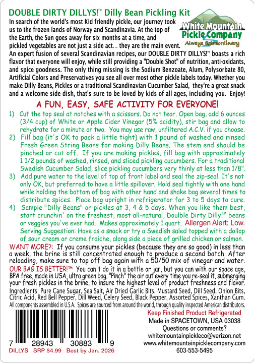 View full detailsWhite Mountain Pickle Co. - Double Dirty Dilly Bean Kids Pickling Kit